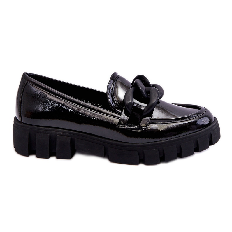 We present women's patent leather moccasins on the Bennett platform from the renowned Vinceza brand. These elegant shoes in classic black are the perfect choice for women who value comfort, style and modern solutions.