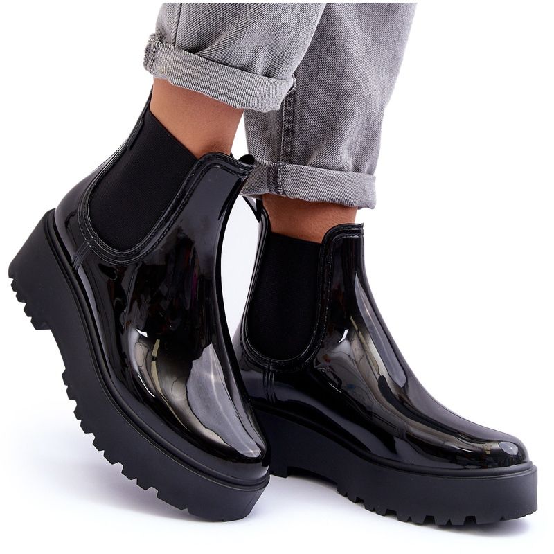 Details: Women's lacquered wellies on the Big Star Mm274395 Black platform