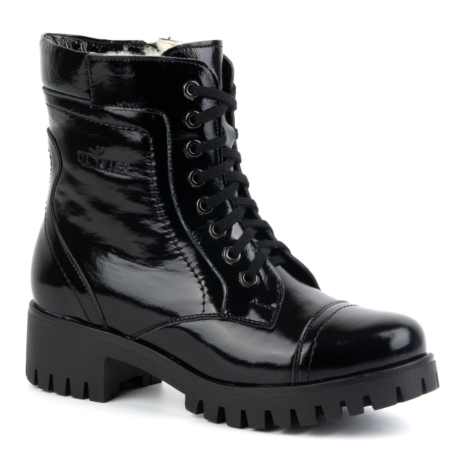 Olivier Olivier Women's leather ankle boots, insulated boots, 272BB, black patent leather