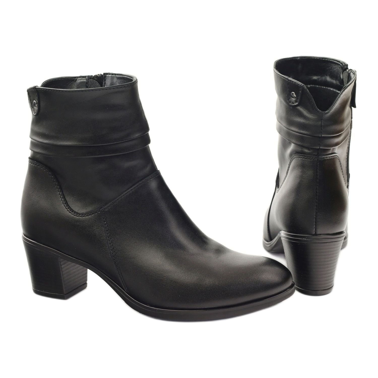 Elegant boots made of smooth, natural leather in timeless black. The gently rounded toe and simple cut give them a universal character, and subtle, symmetrical ruffles on the sides of the uppers add a feminine accent. The side zipper makes it easy to put on quickly, and the stable 5.5 cm block heel provides an elegant finish without losing comfort.