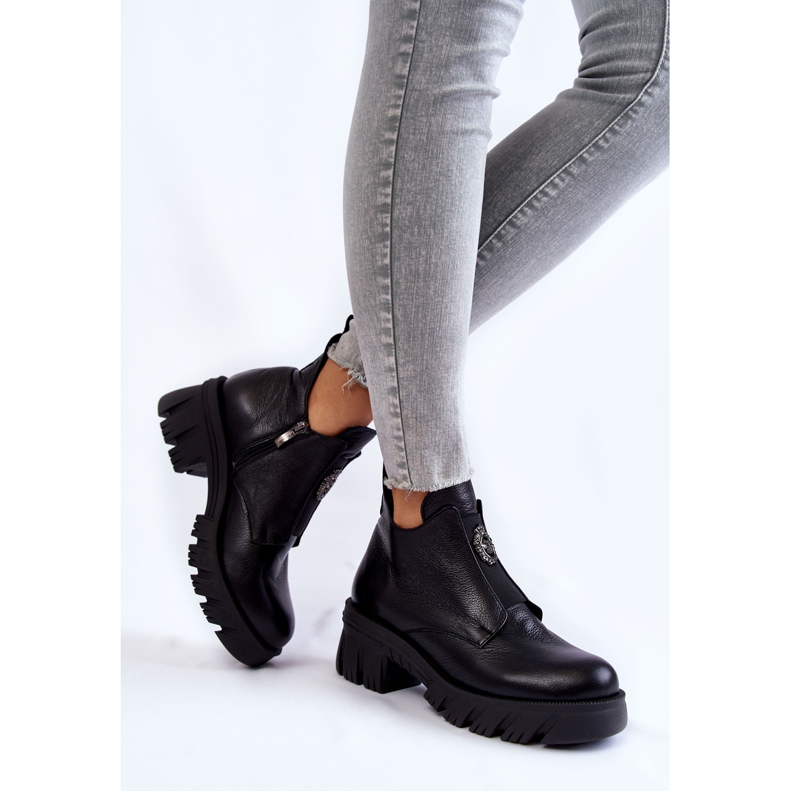 We present elegant women's Maley leather ankle boots in black, which will certainly become an inseparable element of your wardrobe. Made of high-quality natural leather, they combine classic design with modern accents, which makes them ideal for both everyday outings and more formal occasions.