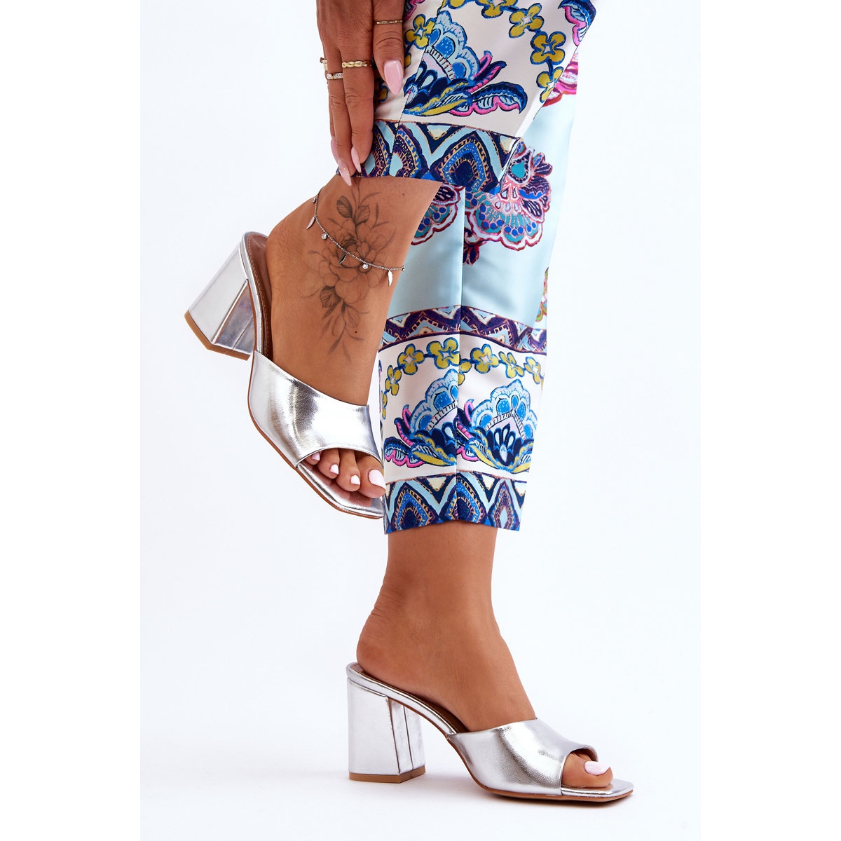 The elegant, timeless Loara flip flops in a metallic silver color are a proposal for hot days, combining a classic cut with a modem accent. Made of high quality ecological leather, embedded on a stable pillar with a height of 7.5 cm, ensure feminine appearance and comfort of wearing.