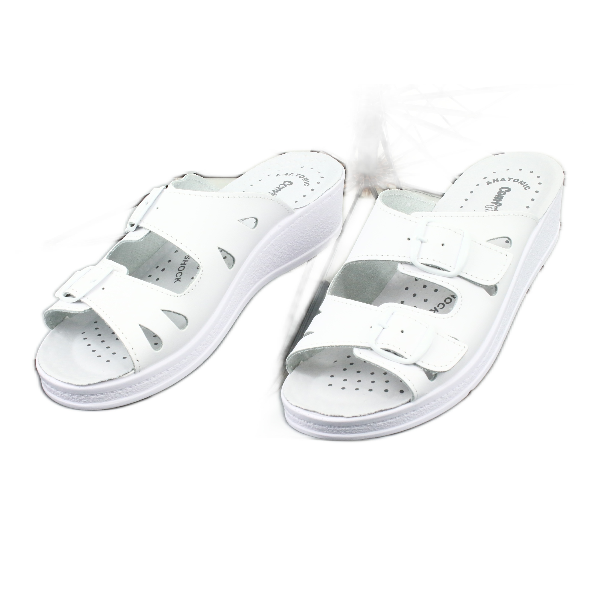 Elegant, comfortable and universal - Comfoty flip flops are a proposal for women who value a combination of style and comfort. Made of natural leather, with a soft leather insole and Anti -Shock system, provide stable support and cushioning during all -day use. White, fresh color makes the flip -flops perfectly match both summer stylizations every day, as well as a work or home outfit.