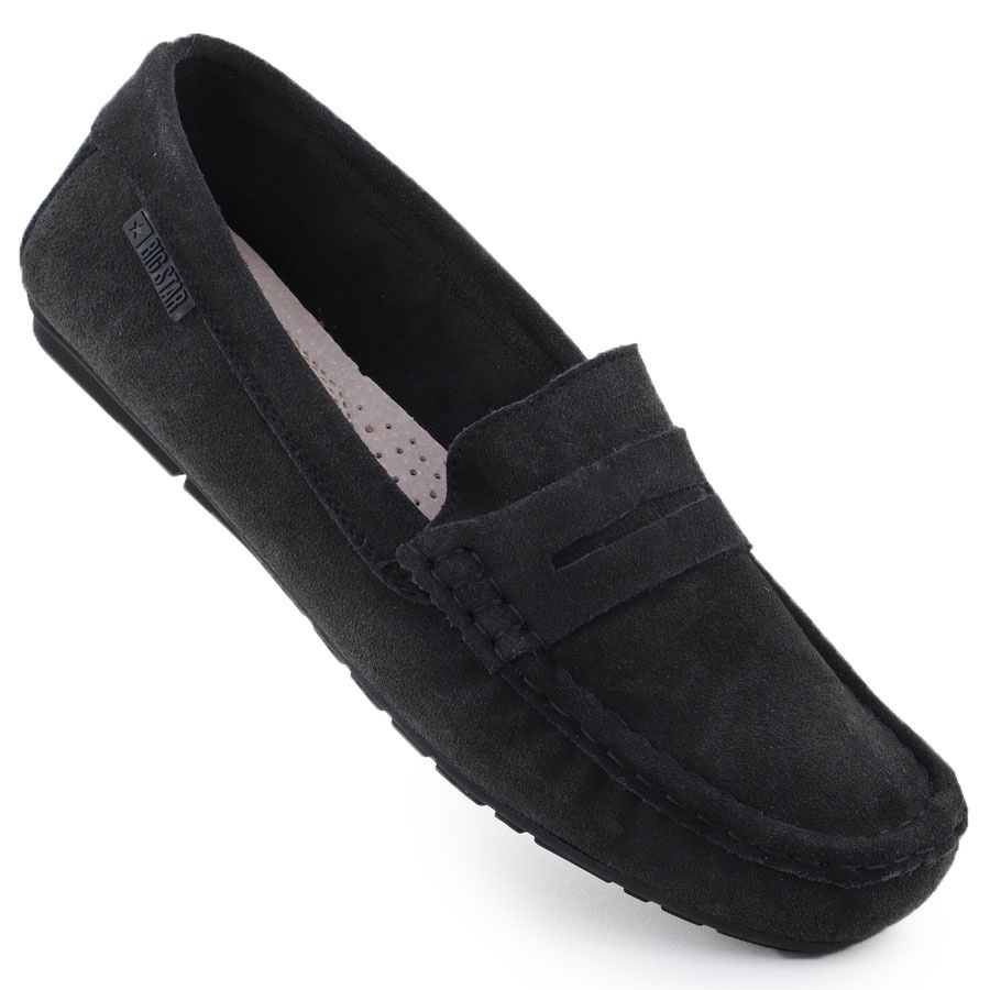 Women's leather loafers Black Big Star RR274948 is the perfect choice for women who value a combination of style and comfort. These elegant Big Star shoes are distinguished not only by fashionable design, but also with careful performance of high quality natural suede leather.