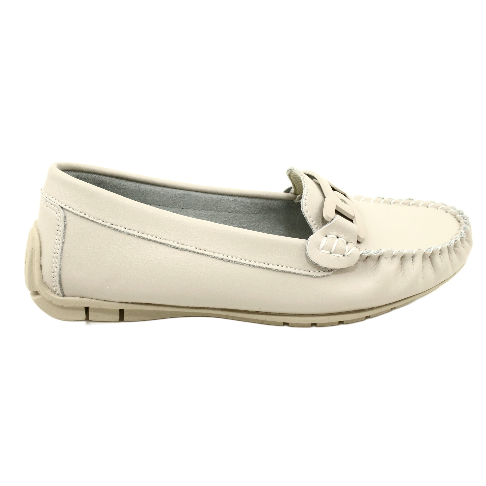 Elegant and extremely comfortable Filippo loafers in a universal, beige shade. It is entirely made of natural leather, with a leather insert that helps limit the sweating of the feet. The model on a low, flexible platform (approx. 1.3 cm) provides comfort even with longer wearing, and the non -slip plastic sole guarantees stability on various surfaces. The classic, slip -like cut with a round nose makes the shoes blend well with many styles - from everyday to more elegant.