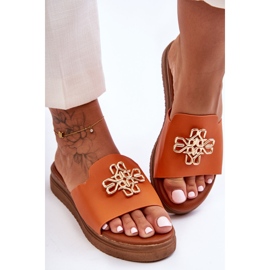 Details: PG1 Women's Leather Platform Slippers with Decoration Orange Azera