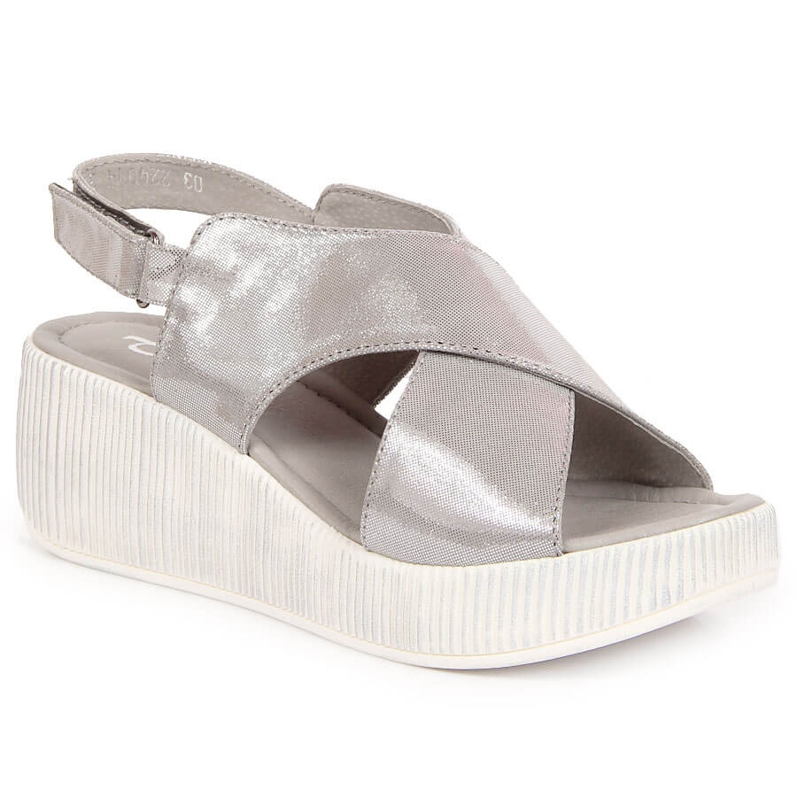 Details: Women's leather sandals on a silver wedge Dolce Pietro