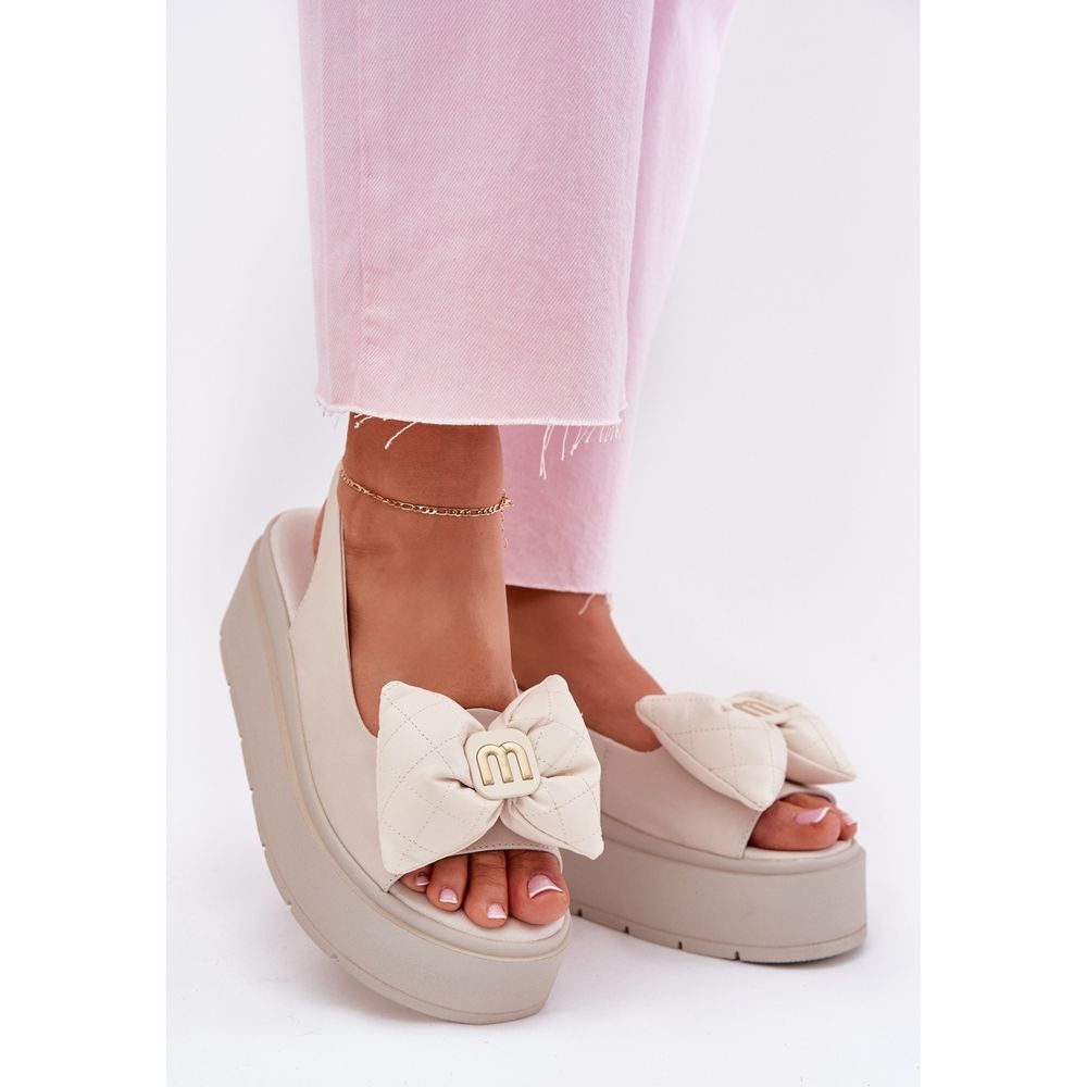 A massive platform with a height of 5.5 cm not only ensures comfort of wearing, but also adds a few centimeters to the figure, making it slimmer. The decorative bow on the front of the sandals introduces a subtle accent, emphasizing female charm. Thanks to the insertion, putting on and taking them off is pure pleasure.