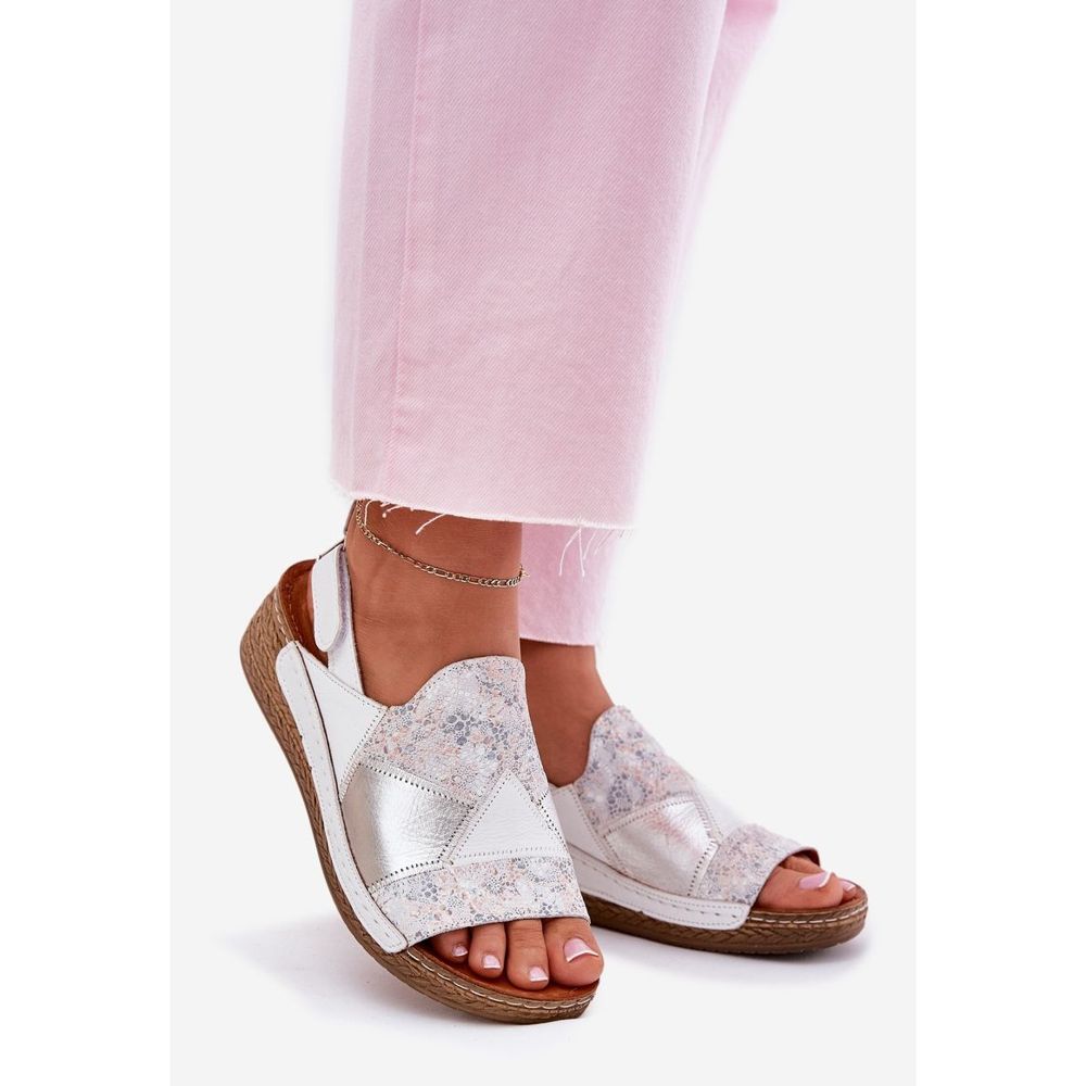 Details: Women's leather sandals with wedge with maciejka braid L7067-11 white