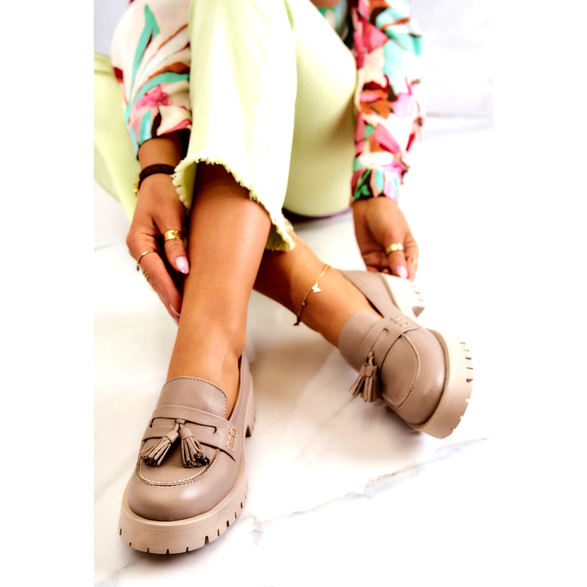 Details: Women's leather shoes Fringes Maciejka 05497-04 Beige