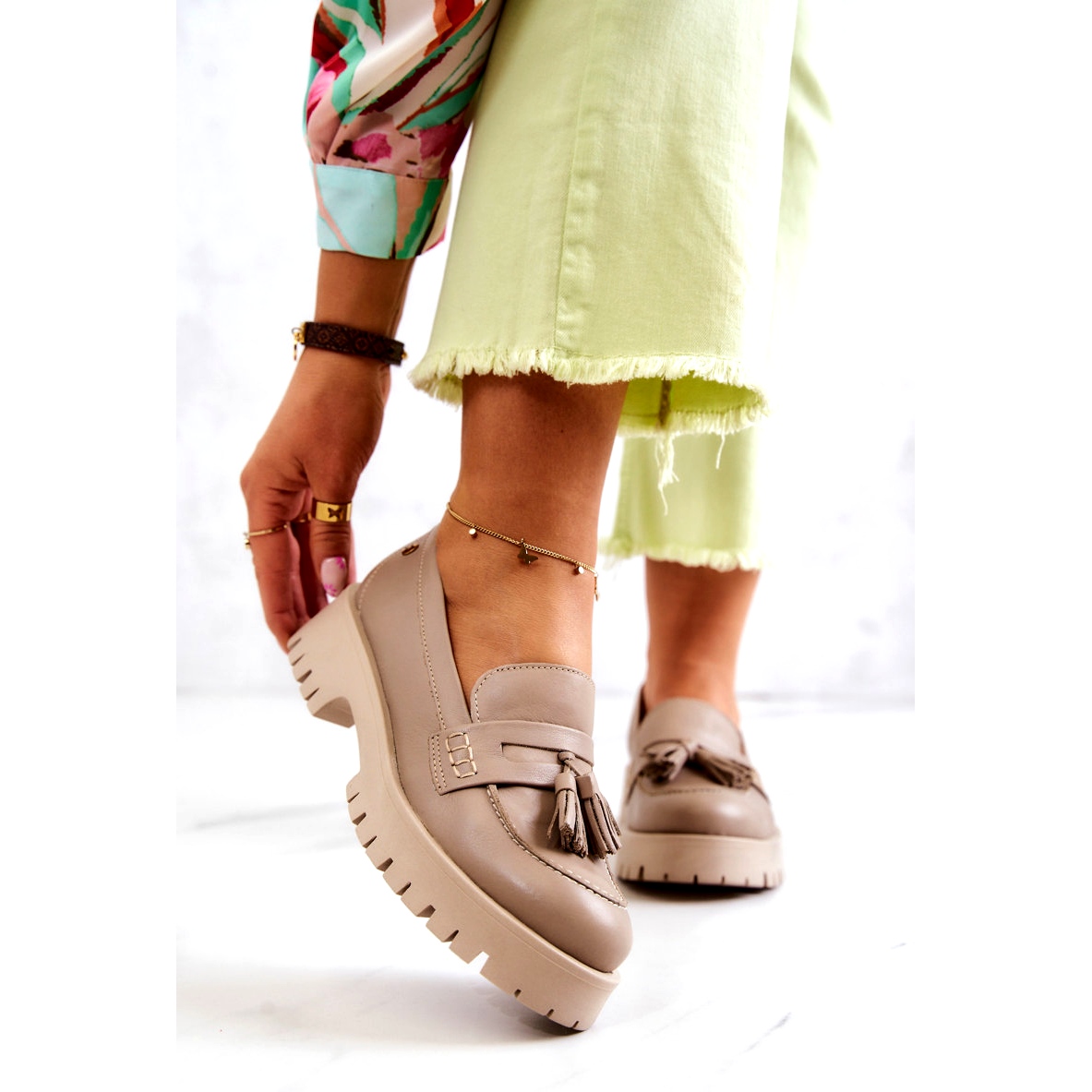 Maciejka Women's leather shoes Fringes Maciejka 05497-04 Beige