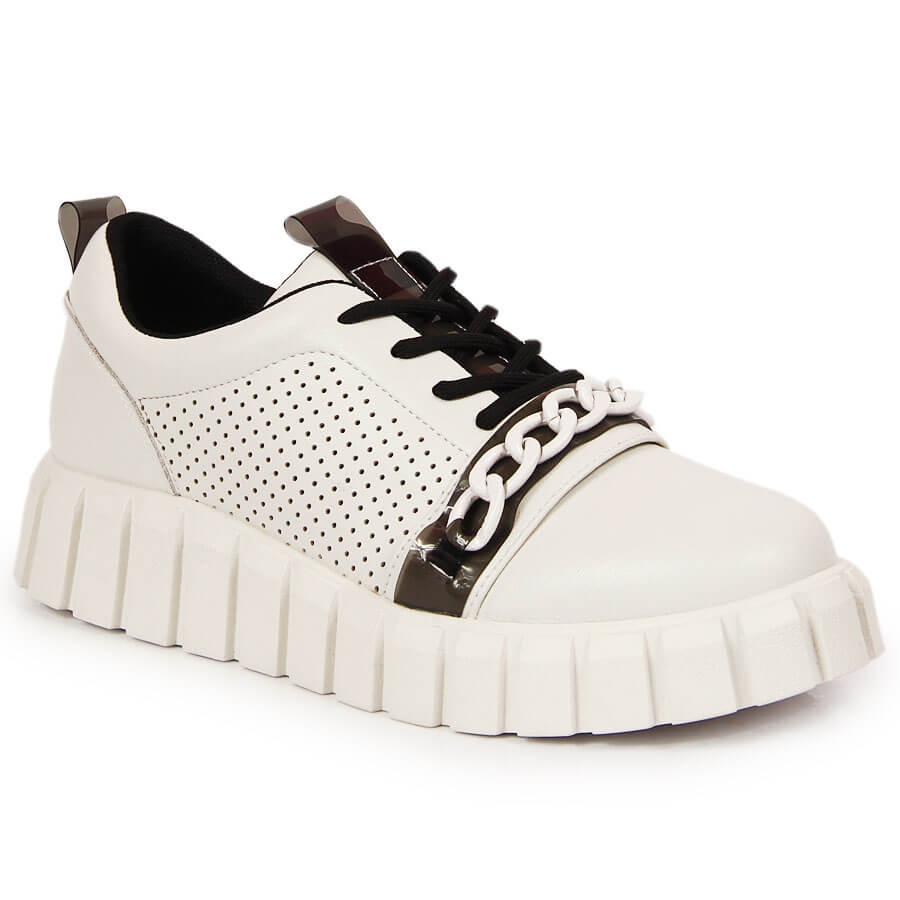 Details: Women's leather shoes on the platform with an Artiker chain white