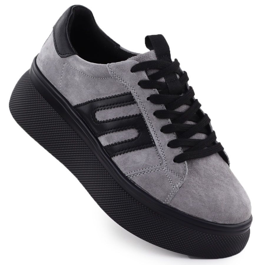 Details: Women's leather shoes sneakers on a thick sole gray Filippo DP7175
