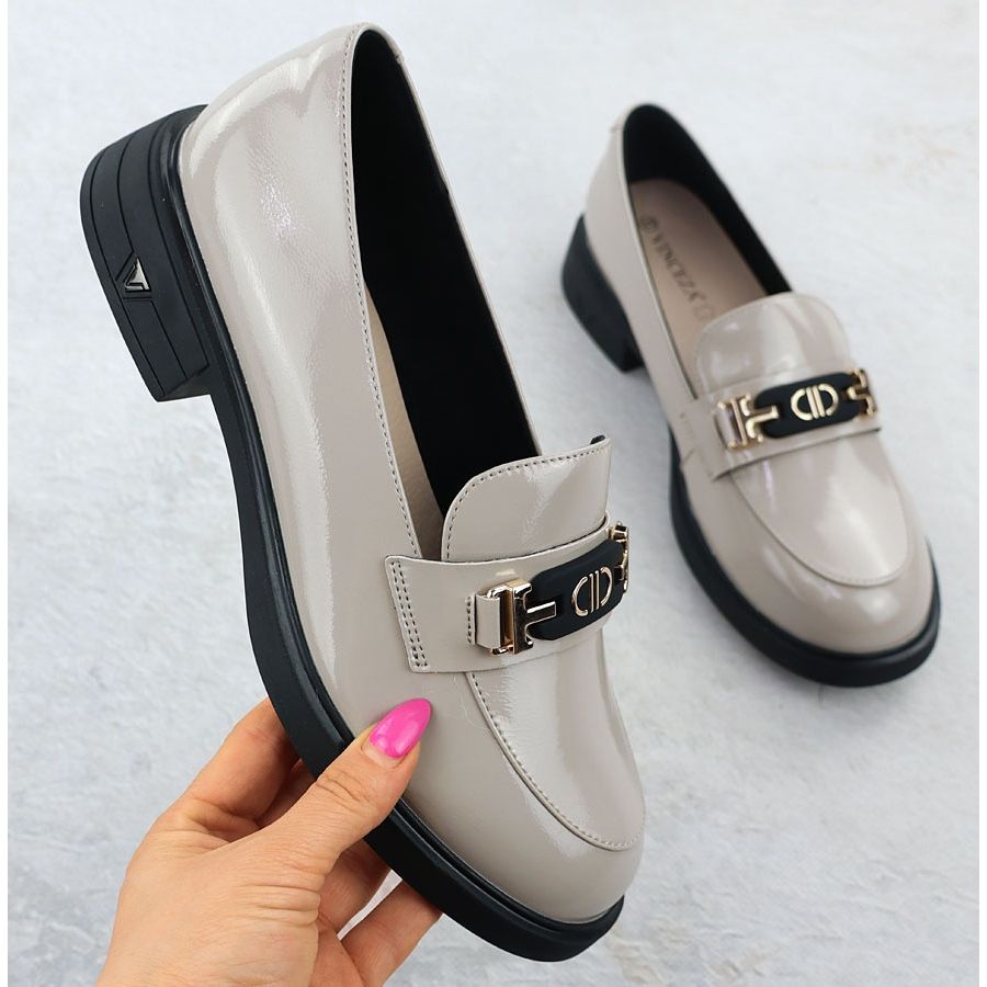 We present beige leather shoes women's Vinceza loafers, model 39957, which combine elegance and comfort. These stylish shoes are made of high quality natural leather, which ensures not only durability, but also a luxurious look. They are great in every female stylization - both on a daily basis and on more formal occasions.