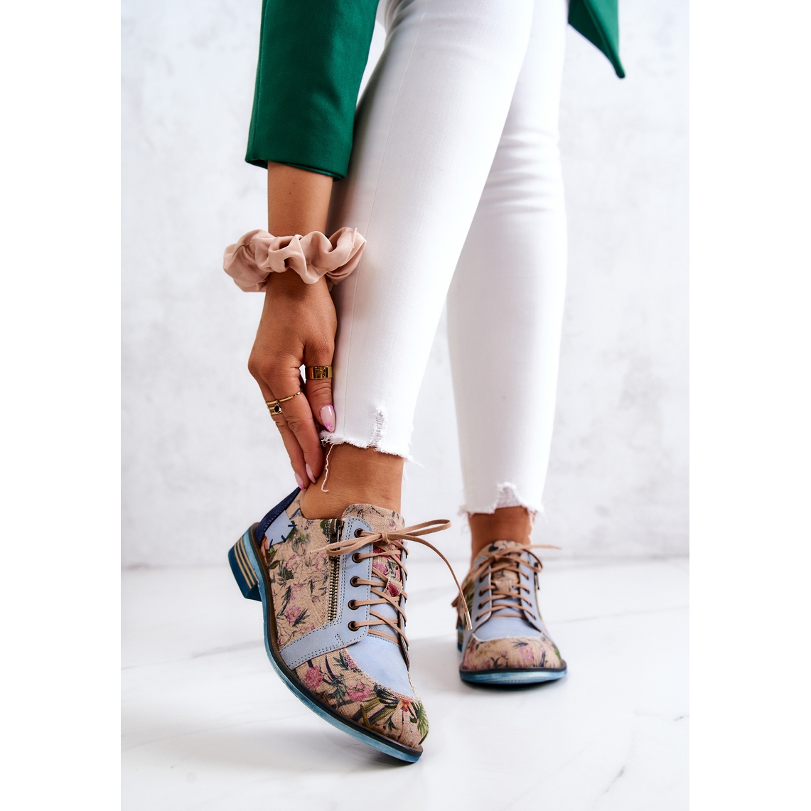Maciejka Women's Leather Shoes With Flowers Maciejka 5096A-34 Blue multicolored