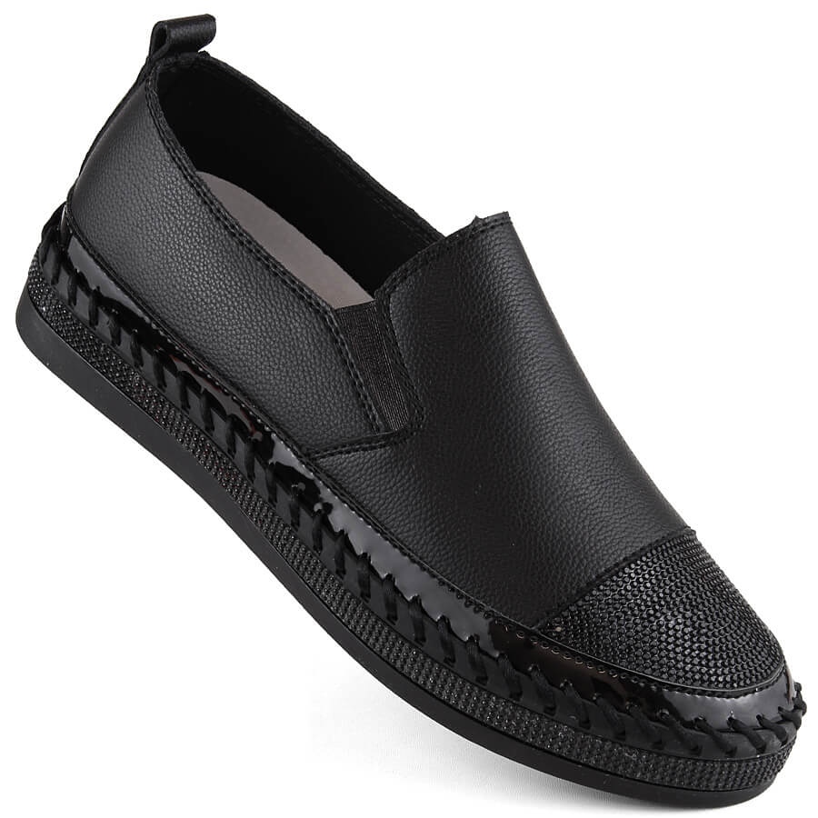 S.Barski S.Barski Women's leather slip-on shoes with cubic zirconia, black D&A LR370
