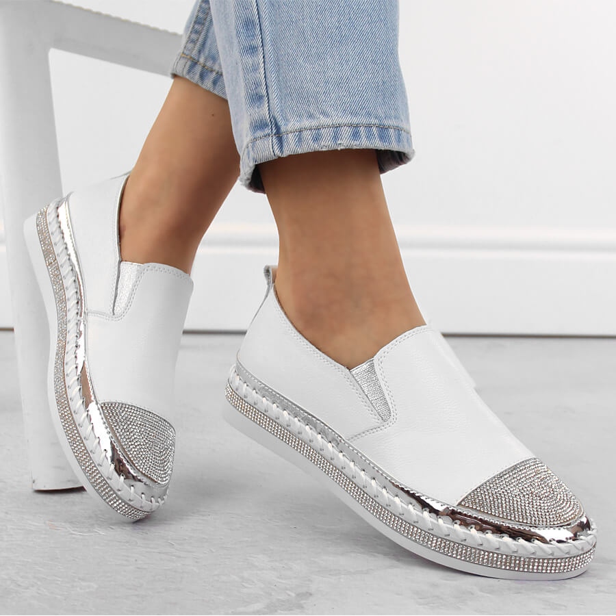 S.Barski S.Barski Women's leather slip-on shoes with zircons, white D&A LR370