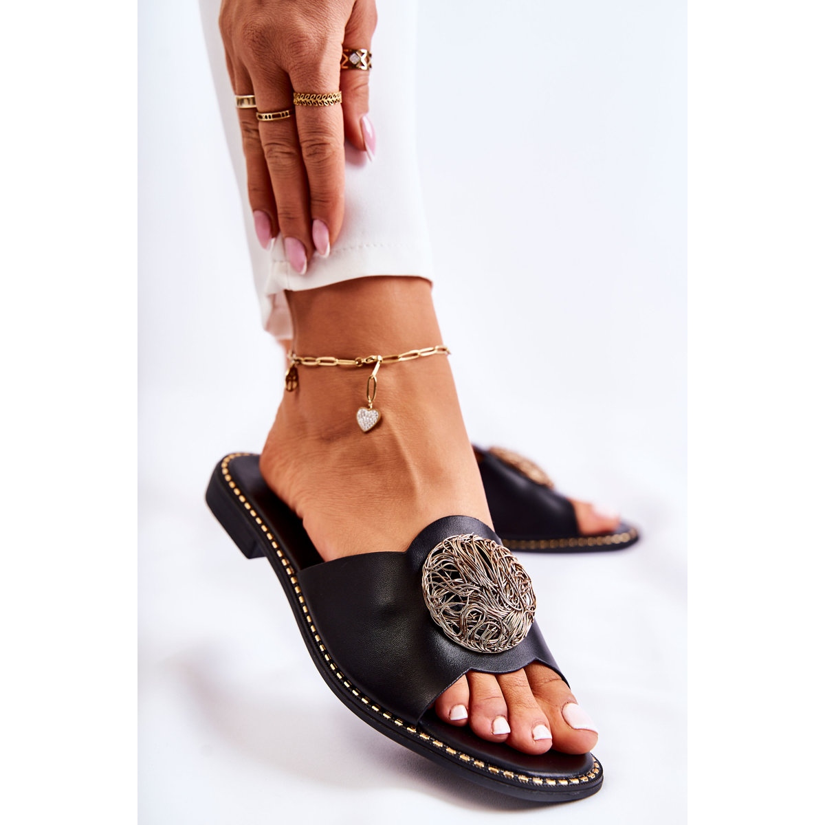 S.Barski S.Barski Women's Leather Slippers With Black Colene Ornament
