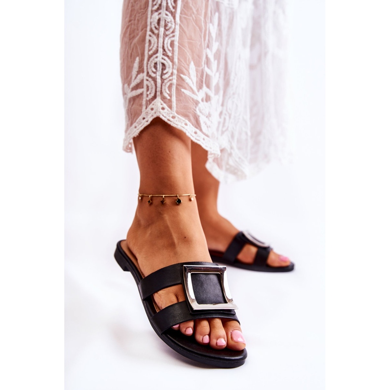 PG1 PG1 Women's Leather Slippers With Black Roysa Decoration