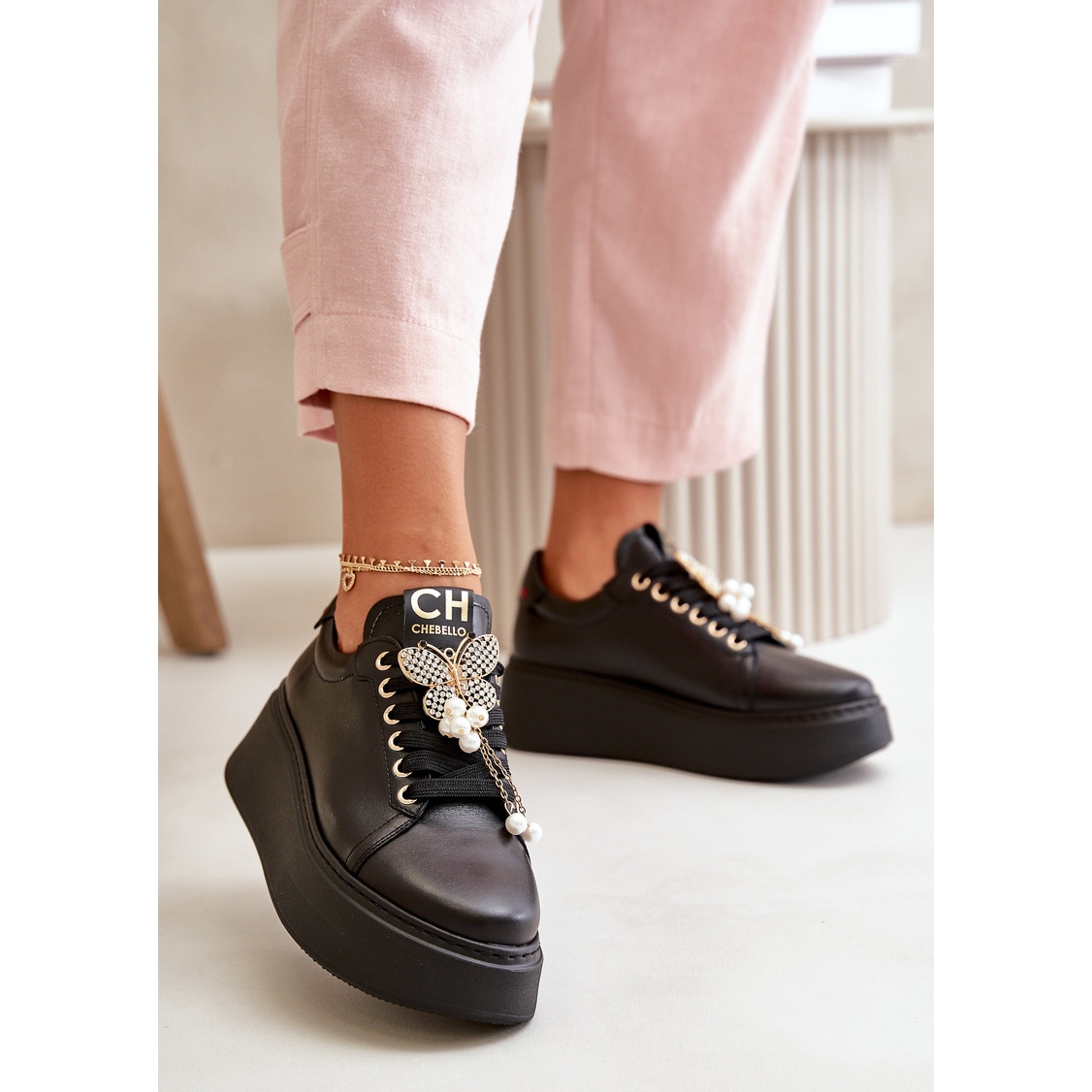 CheBello Women's Leather Sneakers On The Platform With Butterfly CheBello 4585 Black