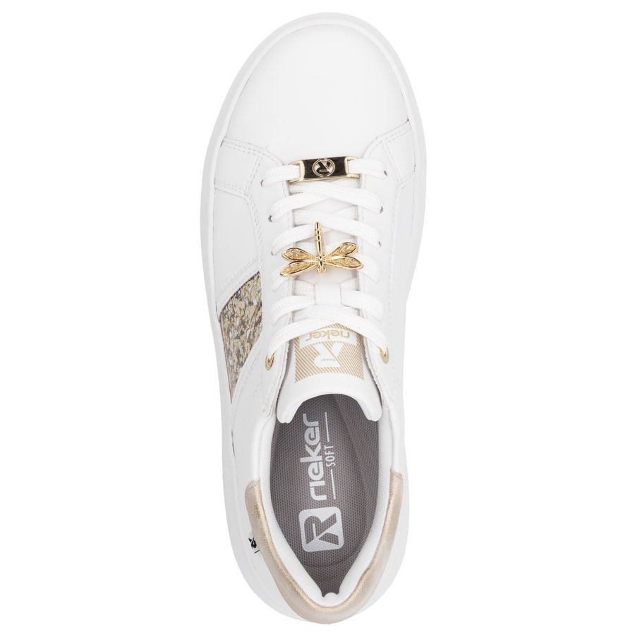 Details: Women's leather sneakers on the white Rieker 1202-82 platform