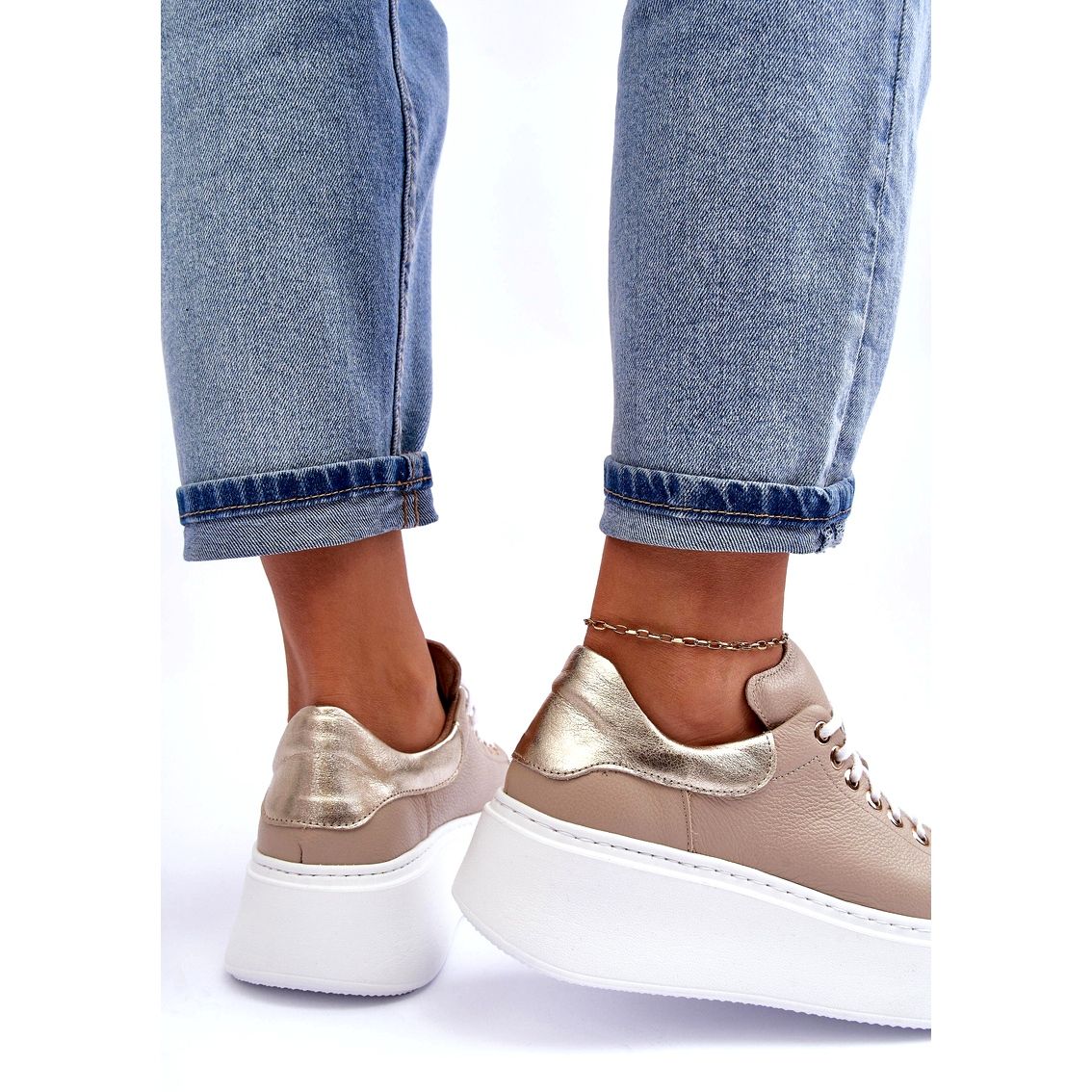 Lemar Lemar Women's leather sports shoes on the platform beige