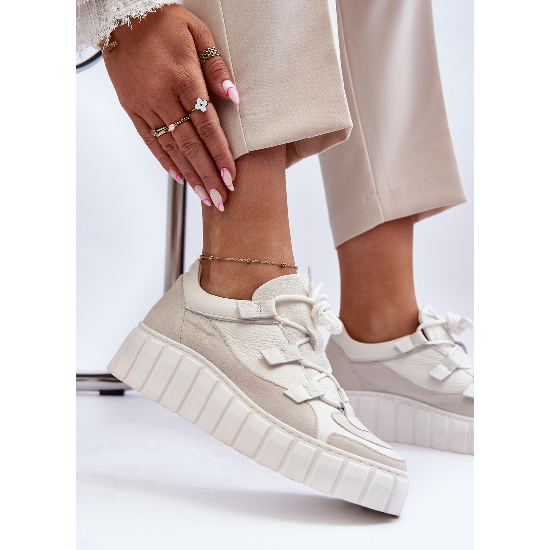 Details: Women's Leather Sports Shoes on the Platform M01/1 Zazoo Light Beige