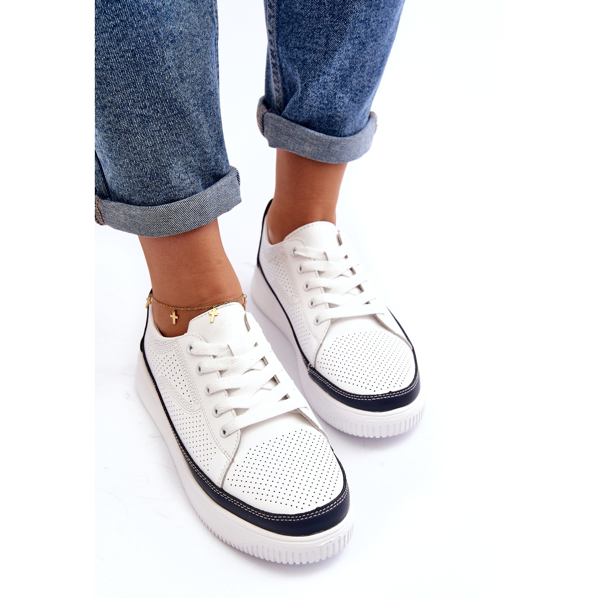 We present women's leather Sneakers sports shoes from the renowned Sergio Leone brand in elegant, white and navy blue colors. Perfect for active women, these sports shoes combine style and comfort, work perfectly during everyday activities.