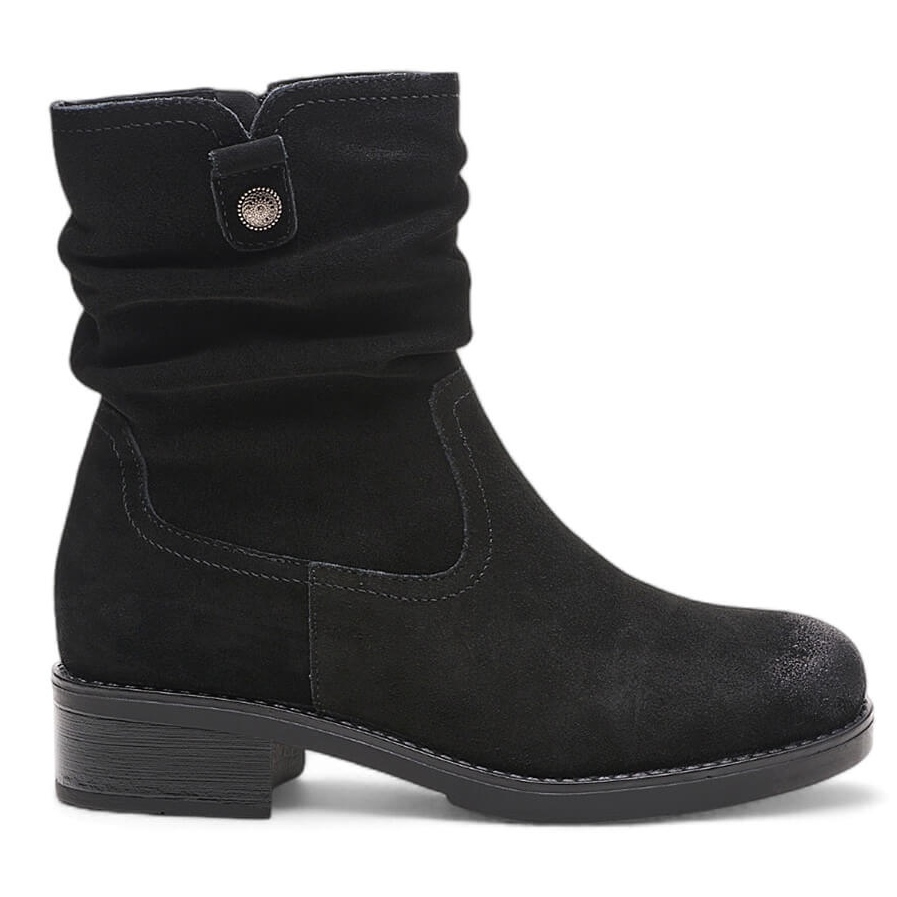 Women's leather leather boots black Sergio Leone BT355-S is the perfect choice for women looking for combination of style and comfort. Made of high -quality suede leather, they delight with their elegance and class. These boots are not only a fashionable addition, but also a practical solution for cooler days, thanks to warming with a pleasant fur, which you will find in both the lining and the insert.