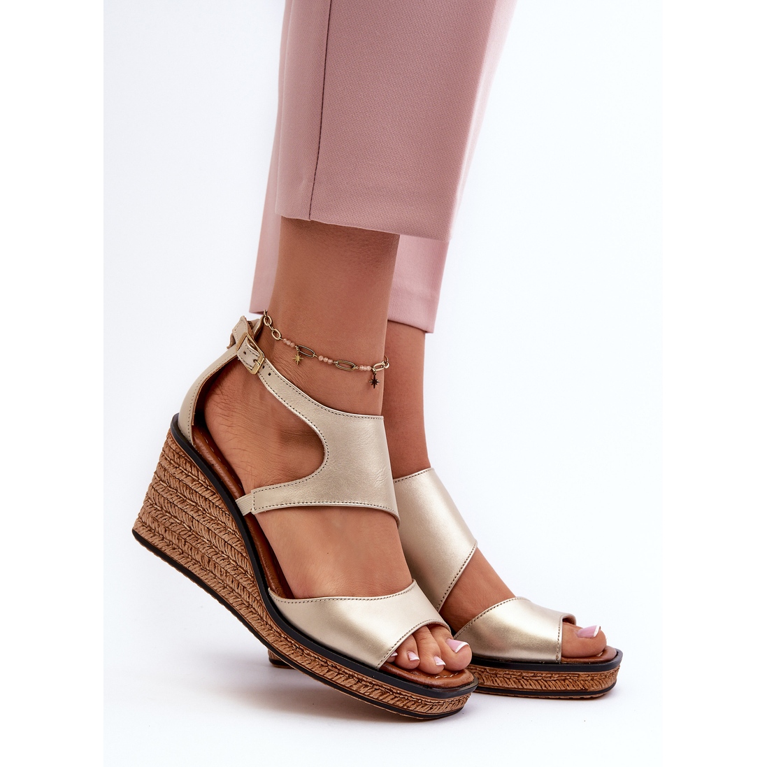 Details: Women's Leather Wedge Sandals Maciejka 06657-25 Gold golden