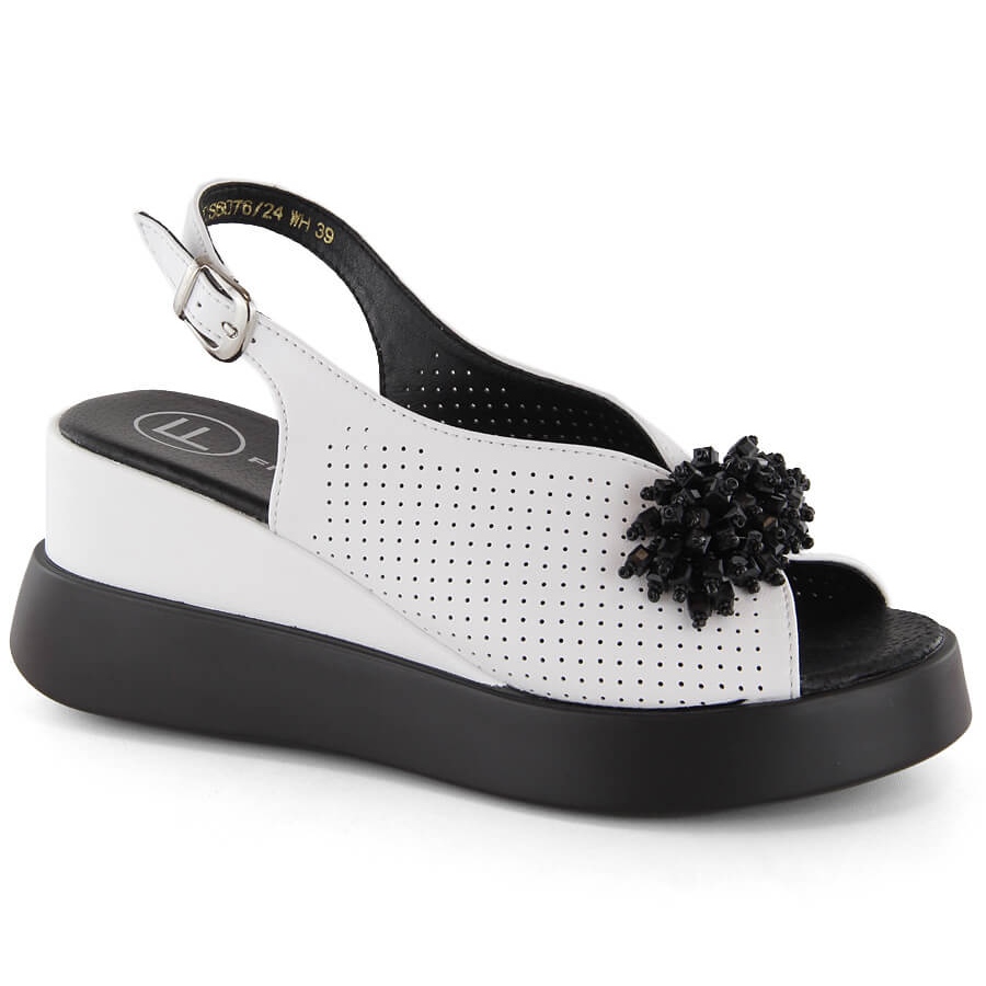 Details: Women's leather wedge sandals with beads, white Filippo DS6076