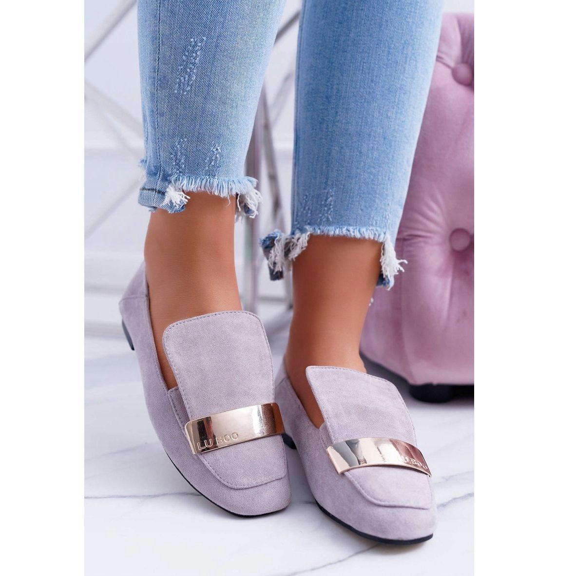 We present unique women's loafers in a shade of elegant gray with a delicate, gold accent. The Lordsy Lu Boo Harlem model is an ideal proposition for women who want to combine style with comfort. Made of high-quality suede eco-leather, these ballerinas will provide not only a fashionable look, but also comfort of wearing every day.