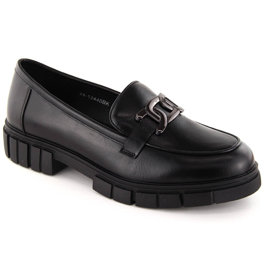 Moccasins women's shoes with a chain black Potocki 12440 is an elegant proposition that will certainly appeal to casual style lovers. Made of high quality ecological leather, they guarantee not only aesthetic appearance, but also the comfort of wearing. Equipped with a natural leather insert, they allow long -term use without a feeling of discomfort.