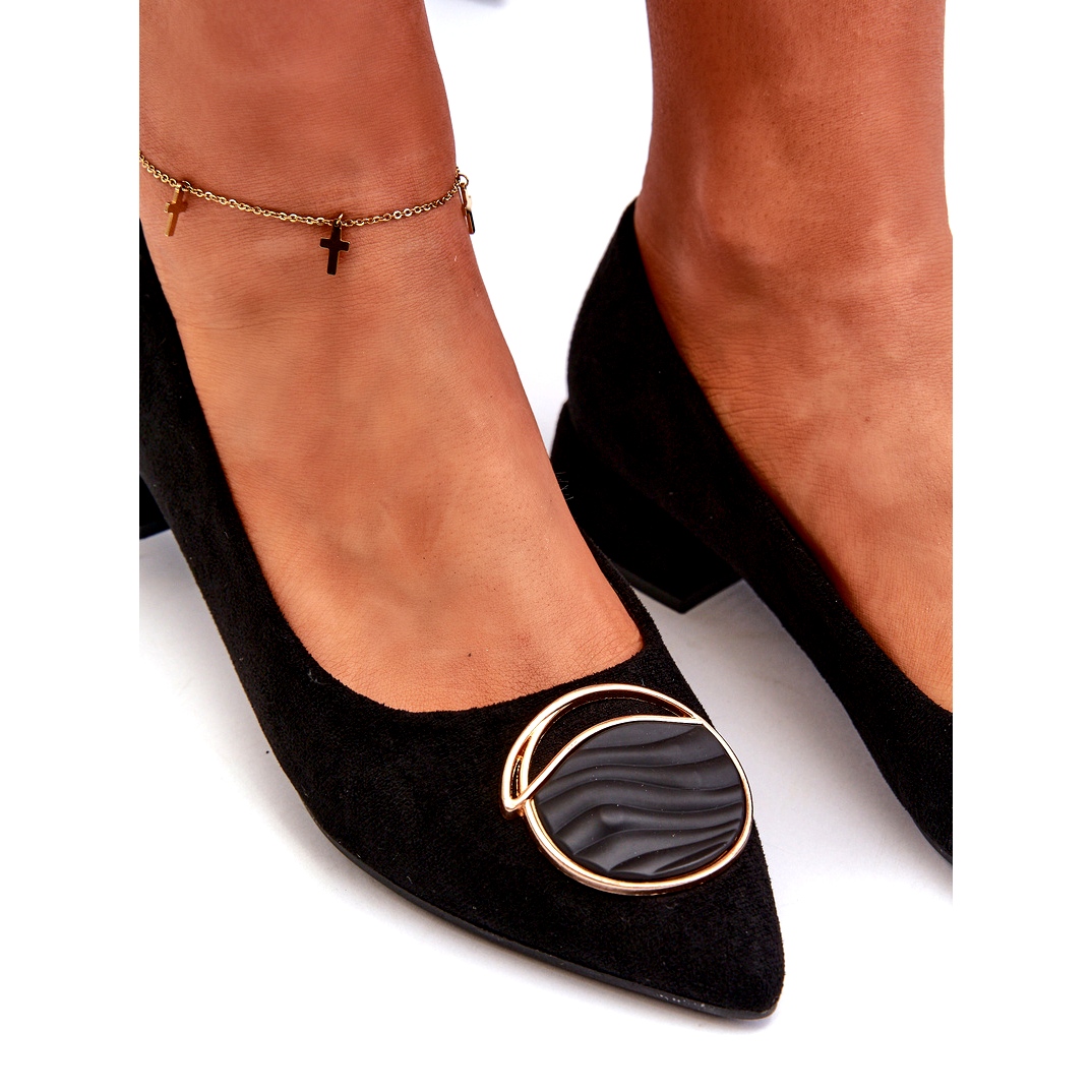 Women's low-heeled women's pumps with eco-eco-sir S. Barski KV27-037 in black is an ideal proposition for women who value elegance and comfort. Made of high quality eco suede, they combine style with practicality, which makes them a great choice both on a daily basis and for more formal occasions.