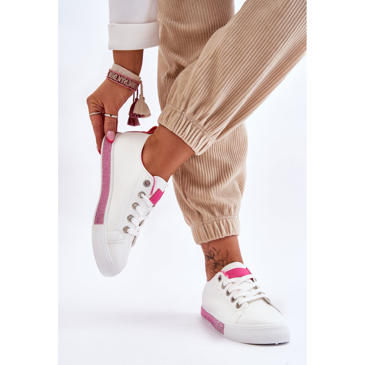Discover exceptional style and comfort with women's low sneakers with rhinestones in a beautiful white and pink color by Demira. This timeless model should be in every woman's wardrobe, offering countless styling possibilities. They perfectly match both casual jeans and flowing dresses, adding character to every creation.