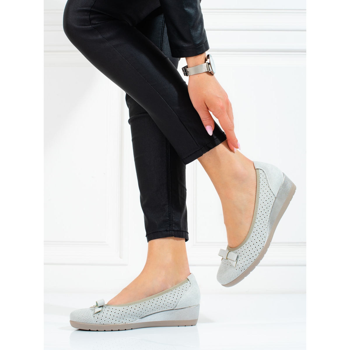 Women's pumps on a low wedge W. Potocki are the perfect choice for women who value both comfort and an elegant look. Made of ecological suede in a shade of gray, these openwork shoes are distinguished by a subtle style that perfectly matches various everyday and formal styles.