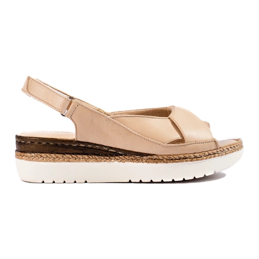 Discover comfort and elegance with women's sandals on a low wedge by W. Potocki in beige. These classic shoes are perfect for many occasions - from evening parties to everyday outings. **Open heel** and **buckle** fastening ensure ease of purchase and adjustment to the foot, and **5 cm wedge** ensures stability and comfort of wearing all day long.