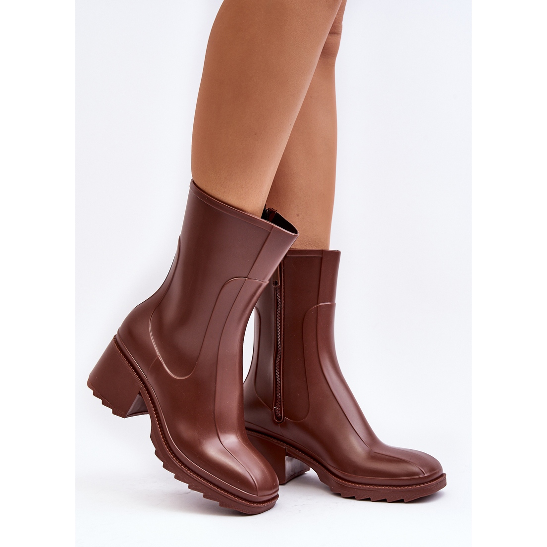 Details: Women's Matte Wellington Boots with High Heels, Brown Bertaida