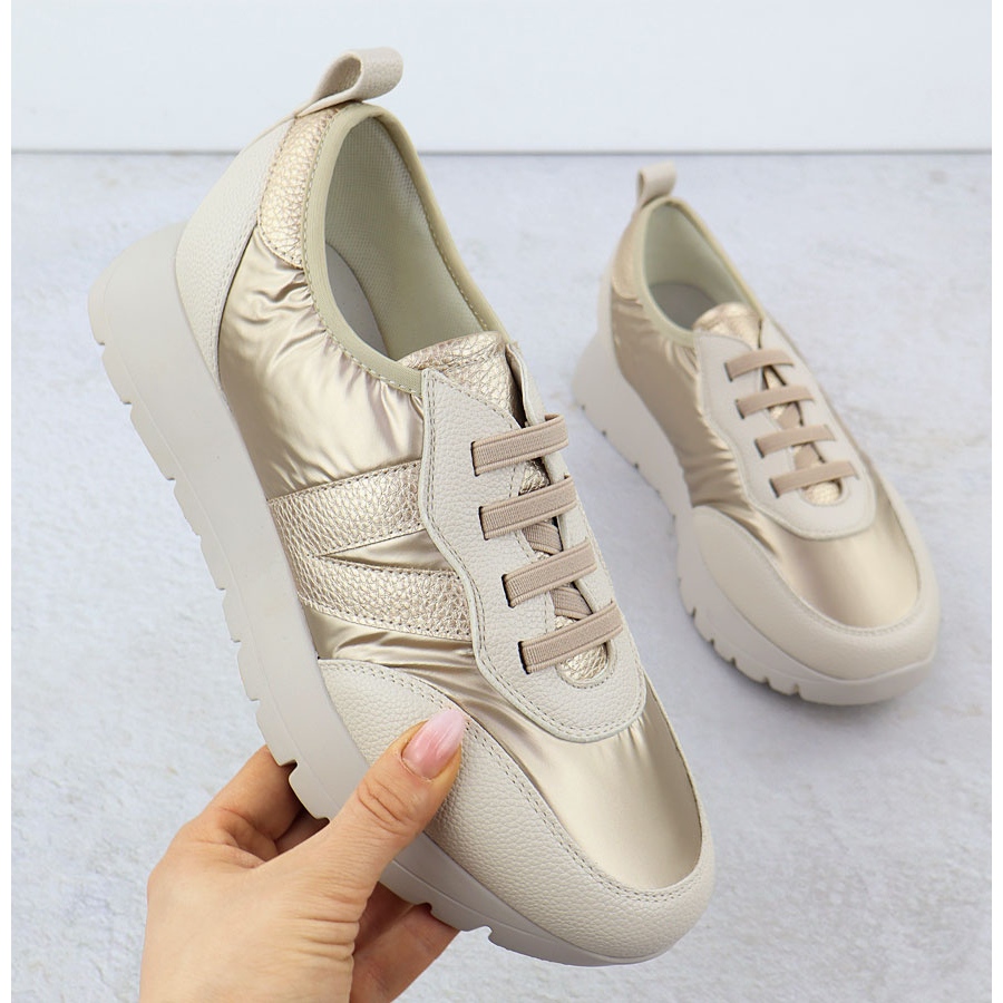 Discover the unusual sports shoes for Vinceza women in a mesmerizing metallic beige-gold shade. Model 58510 is a combination of the latest trends with comfort that you will appreciate every day. Made of high quality ecological leather, they delight with elegant appearance and modern design.
