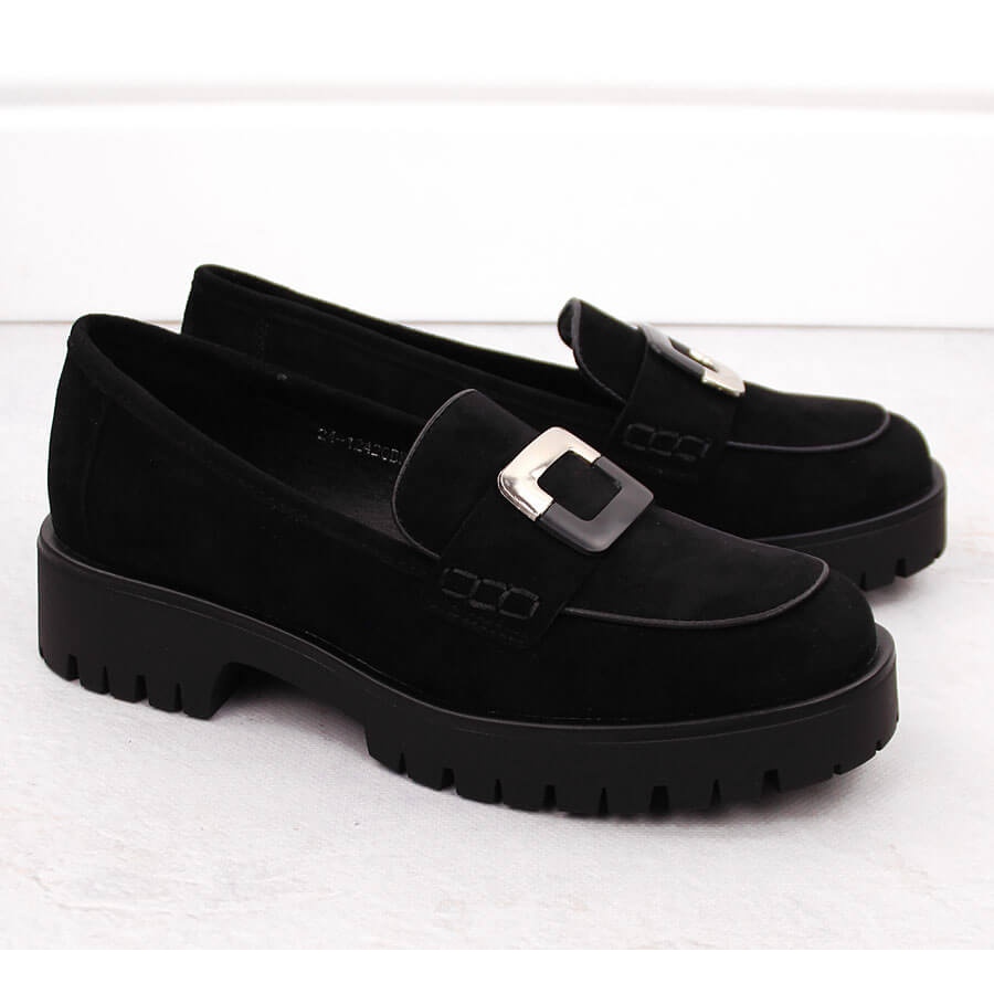 Women's moccasins with admoring, suede black Potocki 12420 is an ideal proposition for women who value both style and comfort. Made of high quality ecological leather, these elegant shoes not only look great, but also ensure comfort of wearing thanks to the natural leather insert.