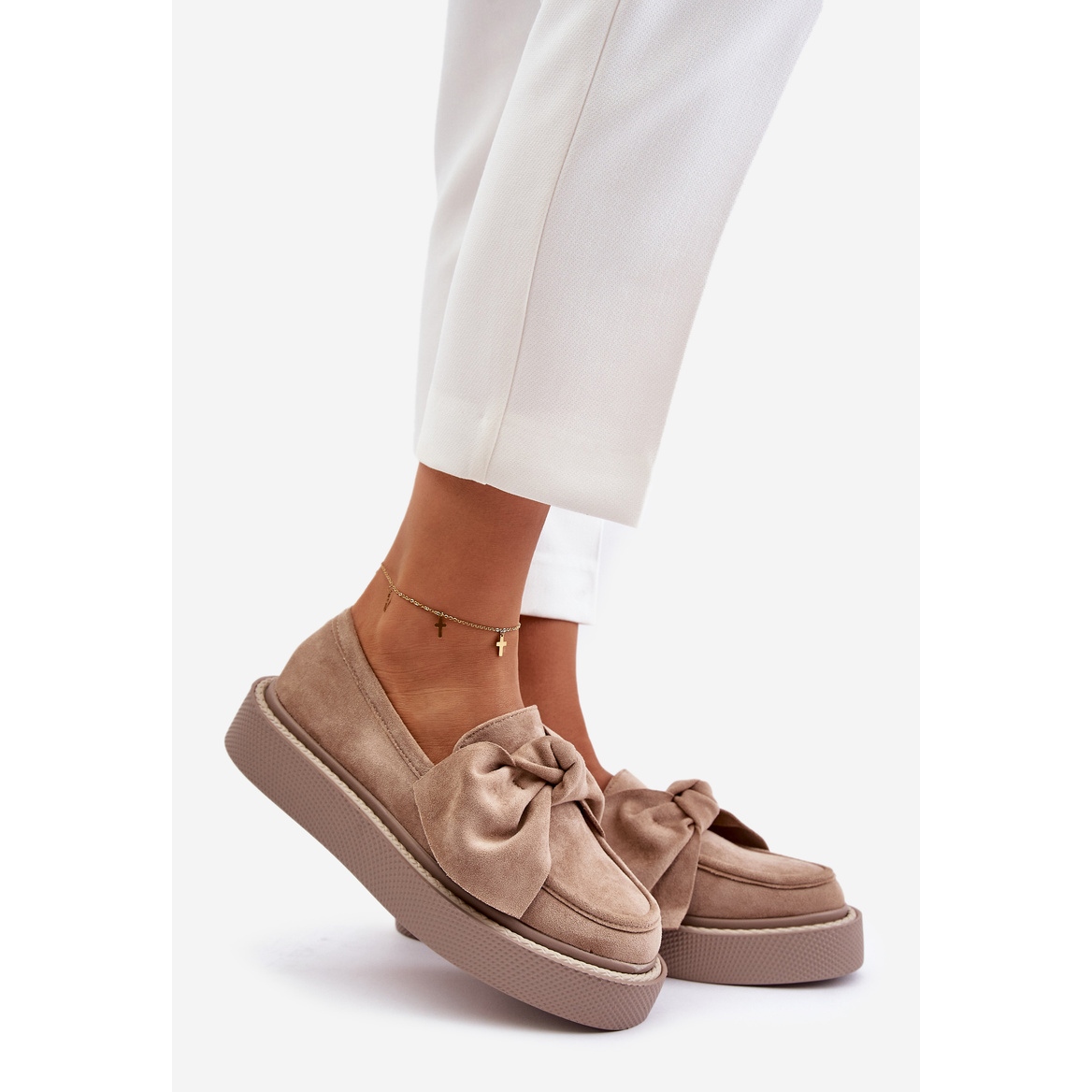 We present beige women's loafers on the platform with a bow from the Naivine brand - the perfect combination of style and comfort! These elegant shoes are made of high quality eco suede, which not only provides aesthetic appearance, but also comfort of wearing.