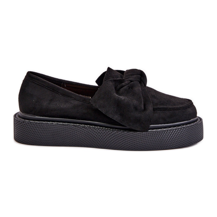 Women's loafers on the platform with a black black bow is a great choice for every fashionable woman who values comfort and style. These elegant loafers were carefully made of high quality eco suede, which makes them look extremely impressive.