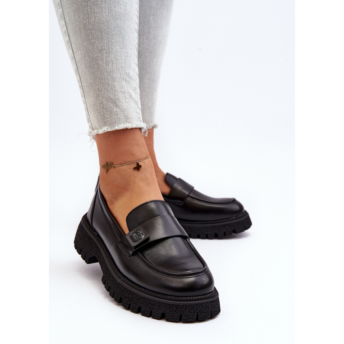 Mediced in a flat -heel with a height of 4.5 cm, loafers ensure comfort throughout the day. A specially designed sole with grooves perfectly insulates from the unevenness of the ground, which makes them the perfect choice for daily walks or meetings with friends. An additional advantage is the decorative strap on the front, which gives them a fashionable look.