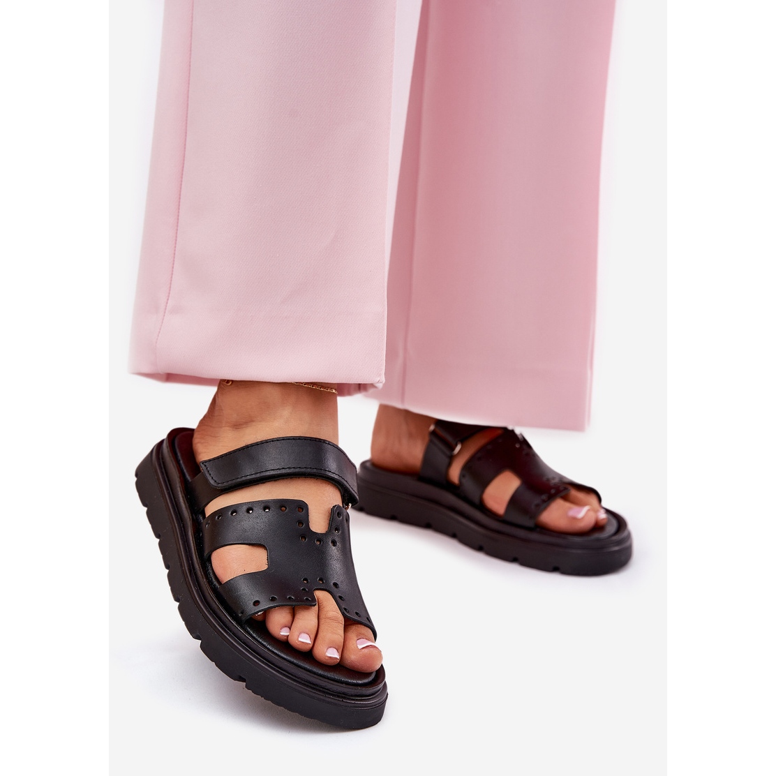 Details: Women's natural leather slippers on the Zazoo 40440 platform black