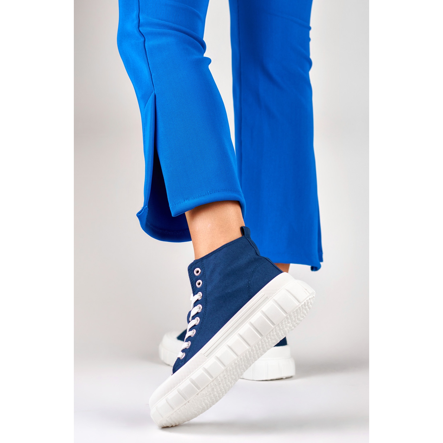 The high upper, reaching 8 cm, stabilizes the ankle, which makes these sneakers a great choice for spring and summer days. Additionally, the 2.5 cm platform makes walking in them not only pleasant, but also adds a bit of height, which emphasizes the silhouette.