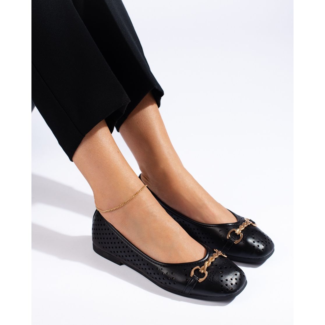 Details: Women's openwork black ballerinas with a chain Shelovet