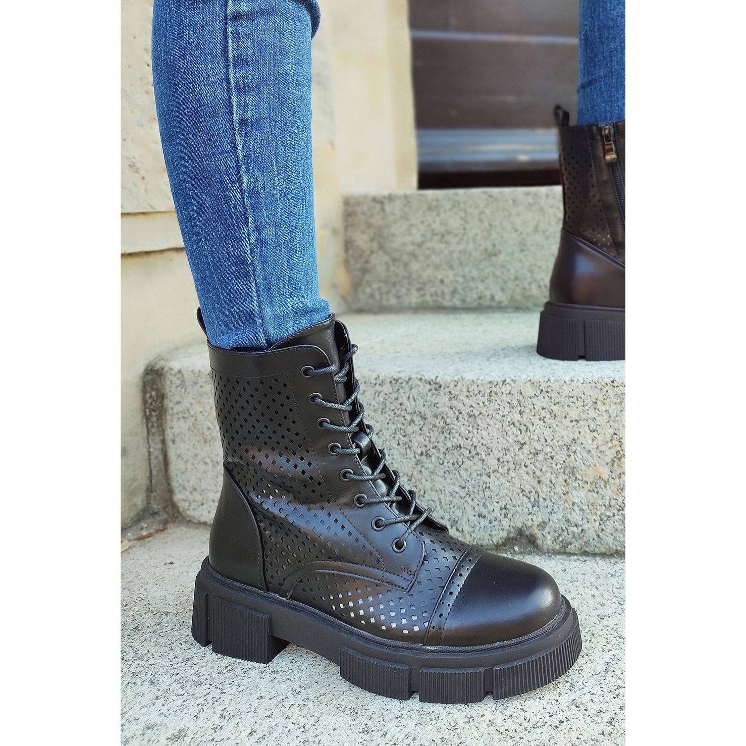 Elegant, openwork boots from the Keeshoes collection are a proposal for women who value style and functionality. Made of high quality ecological leather (outer and insert), in timeless black, they are great as a complement to everyday and more elegant stylizations. The openwork finish adds lightness and improves ventilation, which is why the shoes are universal in spring/summer and on warmer autumn days. Lack of warming means that they are not intended for cold winter days without additional insulating socks.