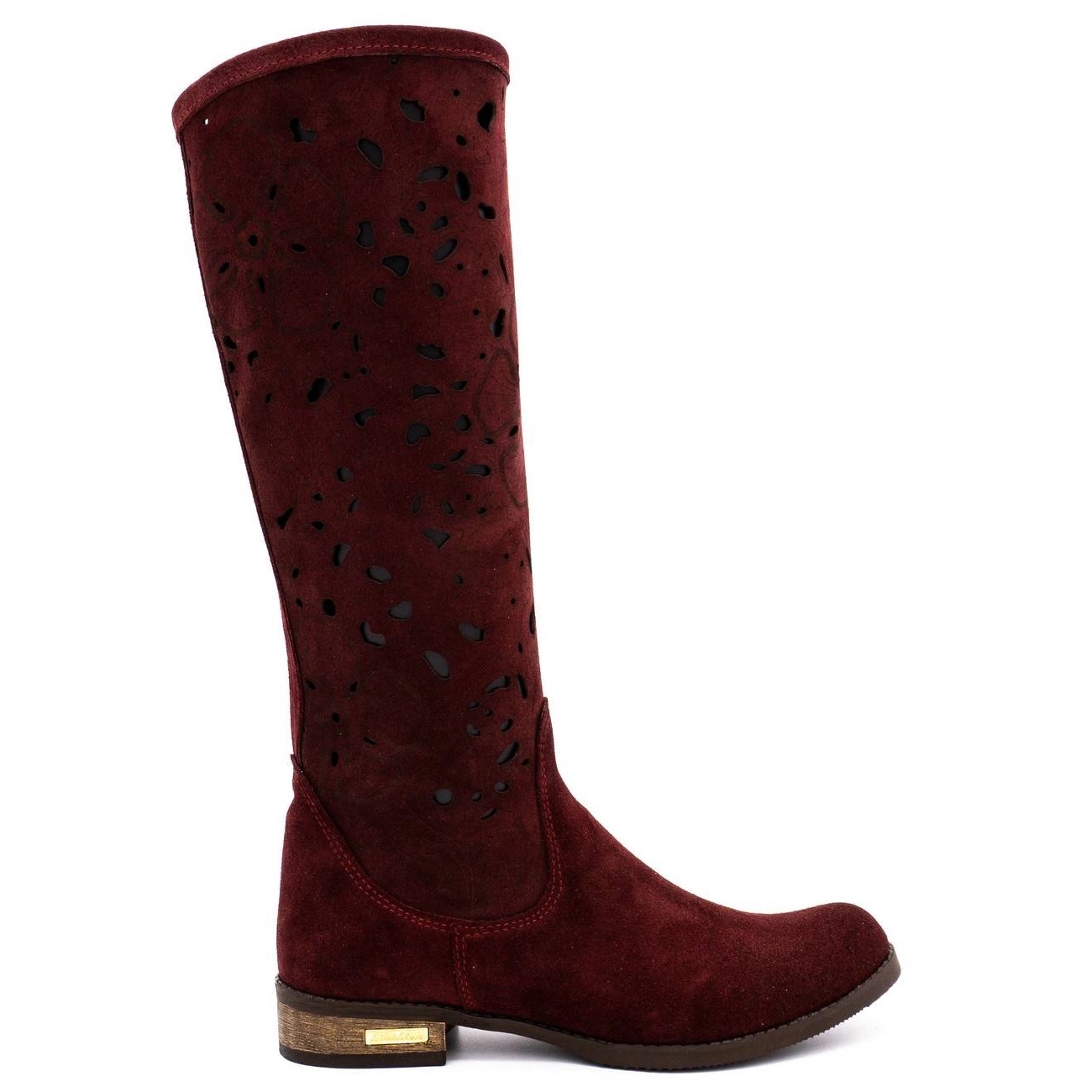 Elegant, comfortable and extremely feminine - Olivier boots, burgundy flowers made of natural leather (nubuk/suede) combine a fashionable openwork pattern with practical solutions. The soft skin perfectly adapts to the calf, and the geometric openwork theme in combination with the floral pattern gives the shoes lightness and original character.