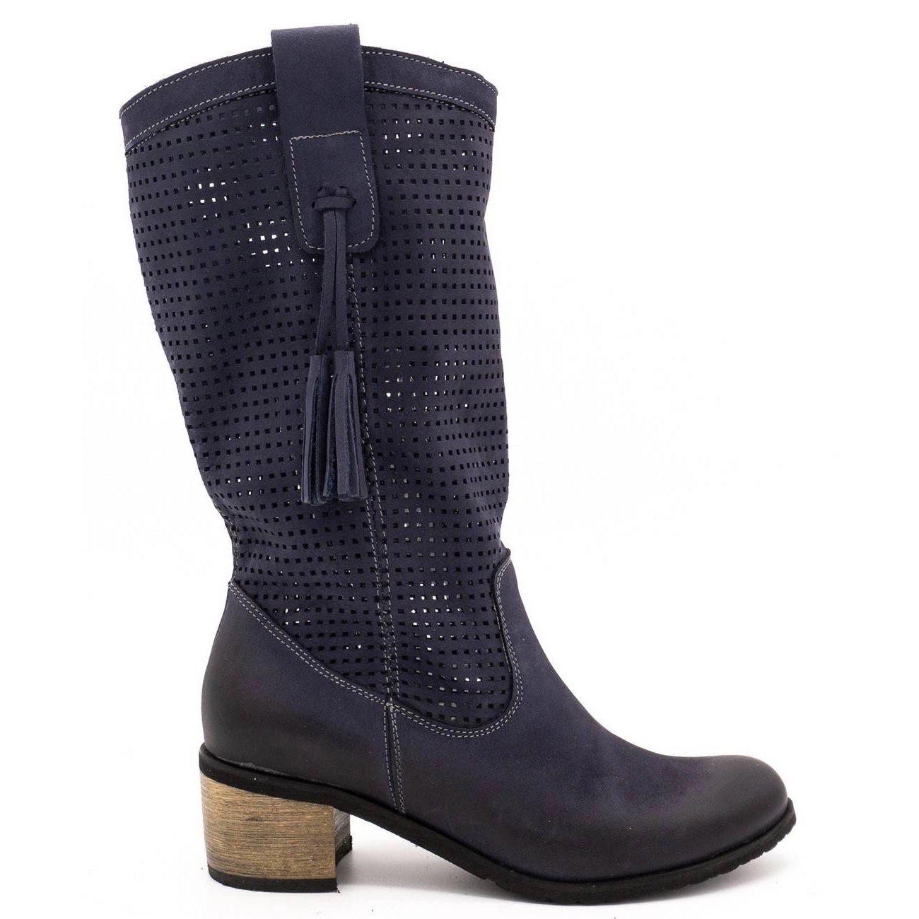 Elegant, openwork women's boots Olivier D44 in a deep navy blue shade. A classic knee cut with delicate cutouts and decorative fringes that add character. Perfect for women who value a stylish and at the same time comfortable appearance every day.