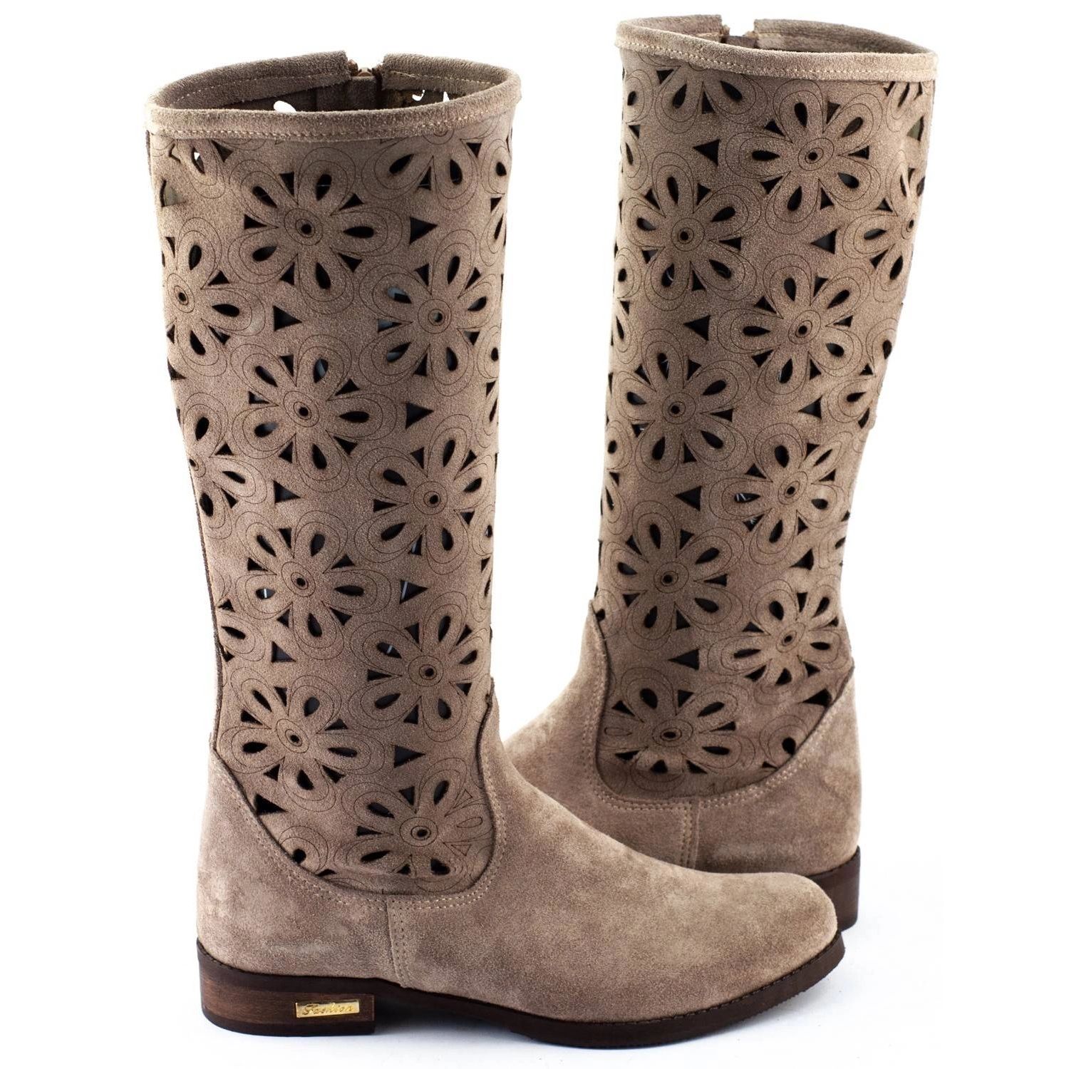 Details: Olivier Women's openwork boots with flowers, dark beige
